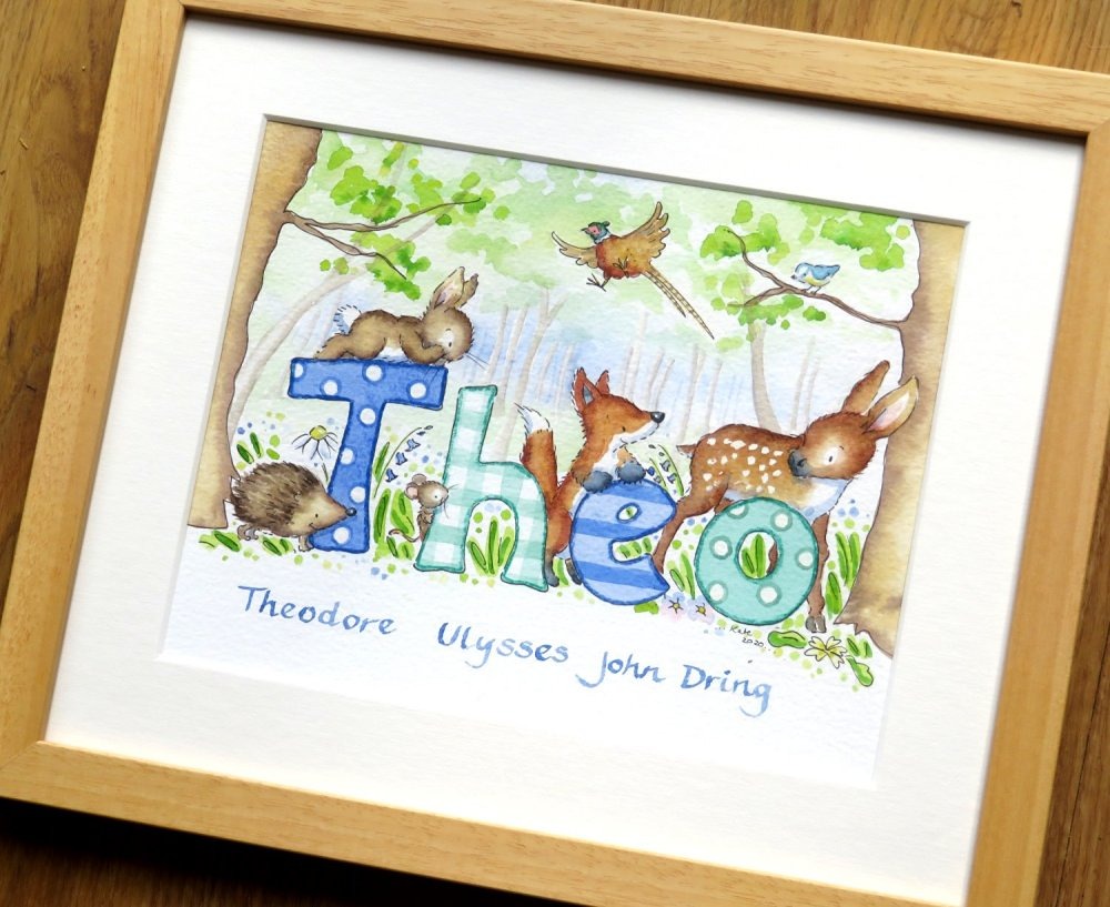 The collection includes a wide variety of hand-painted nursery art designed around boys’ names — perfect for decorating rooms or giving as bespoke and unique baby gifts that will be loved for years: