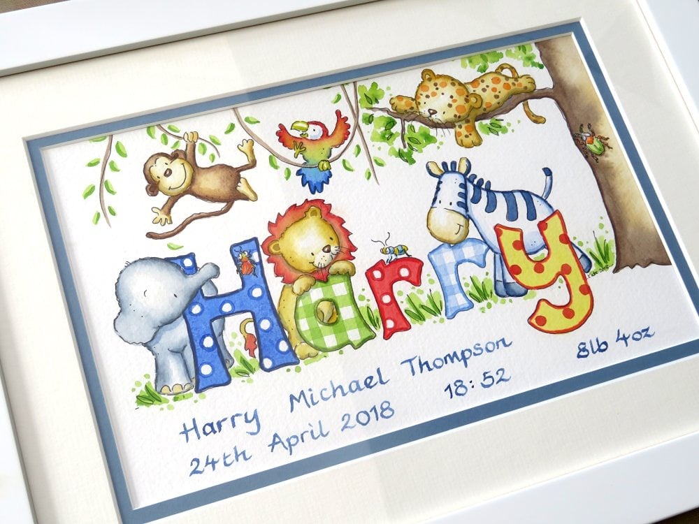 Your child’s name can be brought to life with a gathering of much-loved animals, carefully placed among the letters.