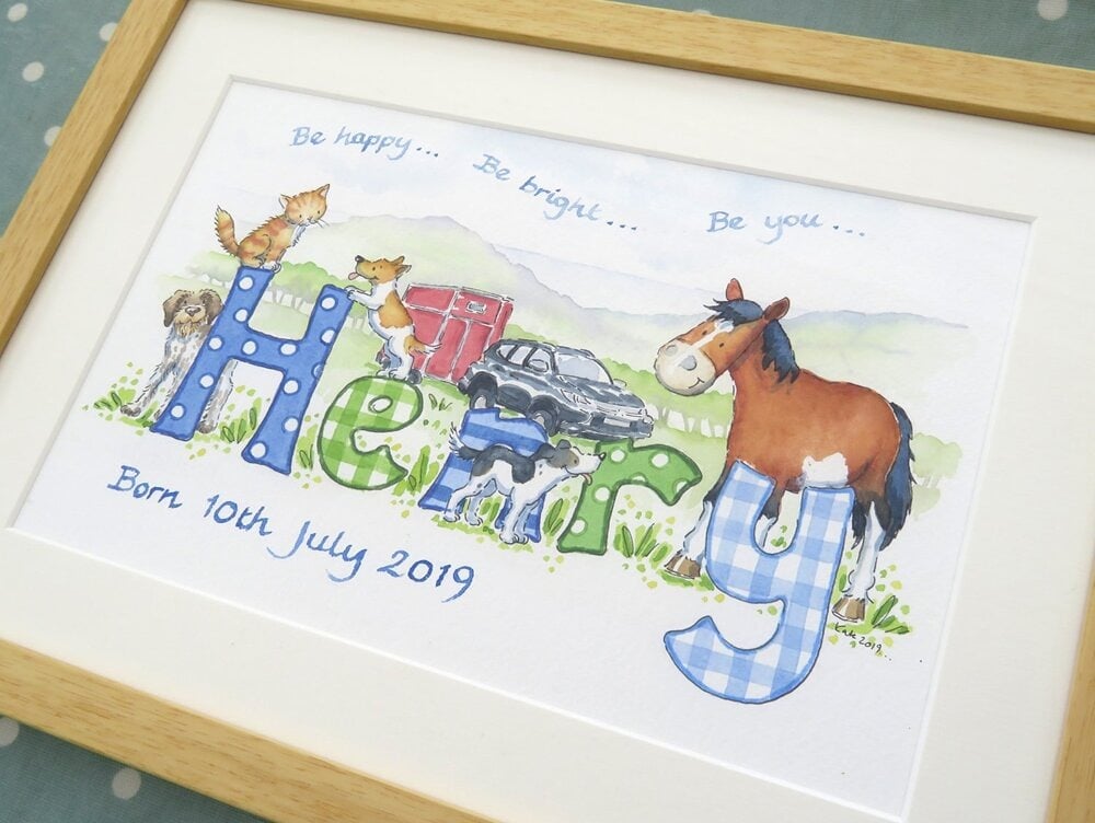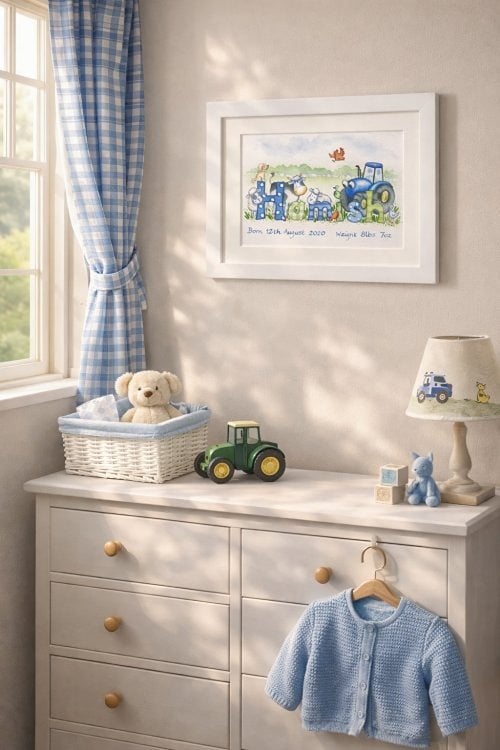 Unlike printed nursery posters, each design is painted by hand in my Devon studio, ensuring your gift is genuinely bespoke. Parents searching for luxury baby gifts UK often want something more personal than high street decor — a piece that reflects family heritage, rural life, or a love of animals.