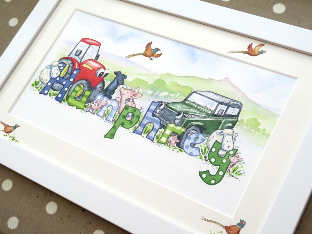 My farm animal designs draw upon that familiar countryside charm, creating hand painted name pictures that feel wholesome, characterful and enduring.