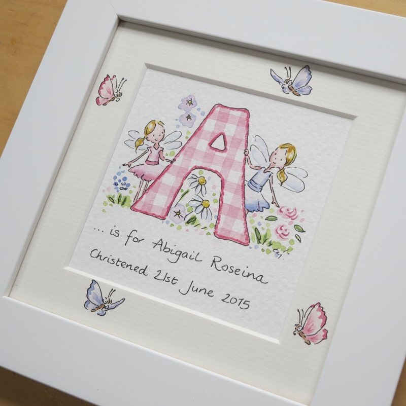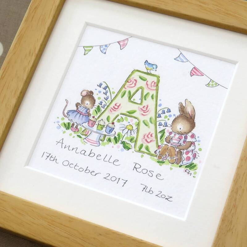 Each initial painting is individually hand painted to order and personalised with your child’s name, creating timeless nursery wall art to mark a birth, baptism or naming day. Designed in a traditional storybook style and finished with care, these bespoke keepsake paintings are made to be treasured long after the nursery years have passed.