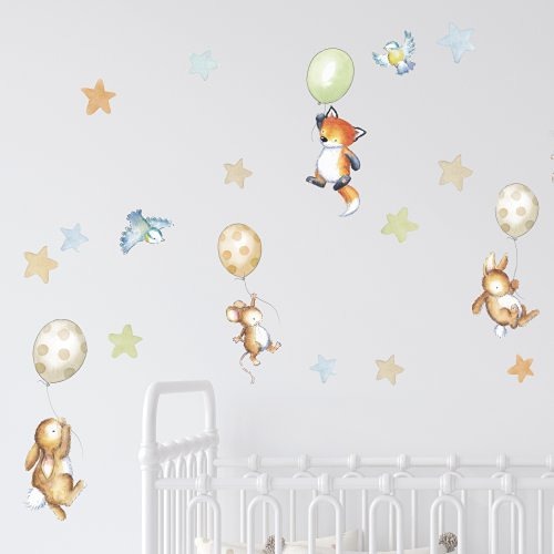 This theme works beautifully with natural colours — soft moss greens, warm browns and pale sky blues. Wooden toys, wicker baskets and cosy blankets help complete the peaceful woodland atmosphere.