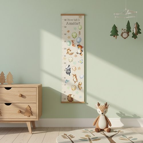 Because these designs are based on original illustrations rather than temporary wall graphics, they can continue to be enjoyed long after the nursery years. A height chart can record a child’s growth wherever the family lives, and a favourite picture or sign can easily find a place in a new bedroom.