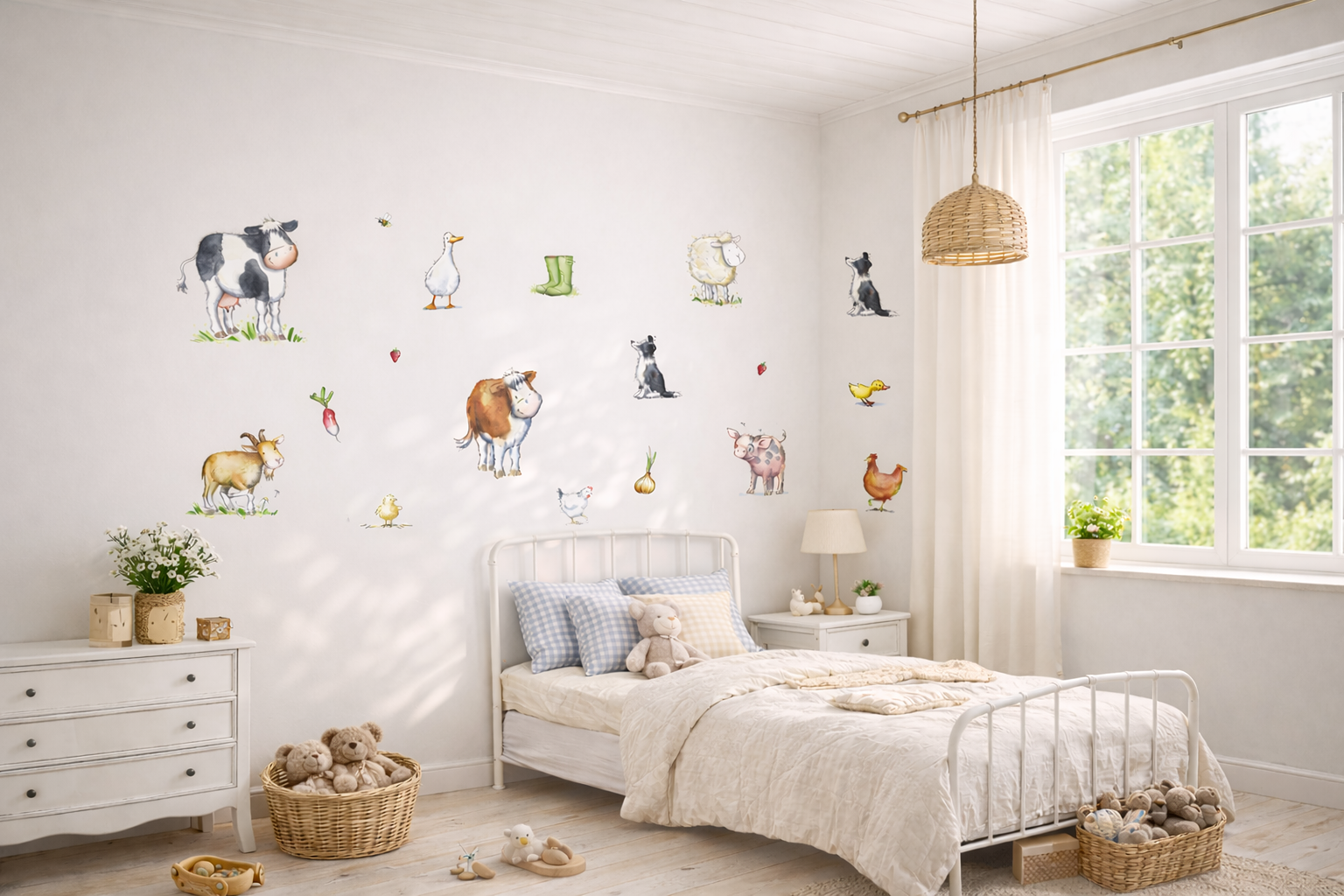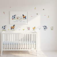 - Farm animal nursery wall decals printed in the UK from Kate Garrett’s original watercolour illustrations. Repositionable fabric wall stickers to create a charming countryside nursery scene.