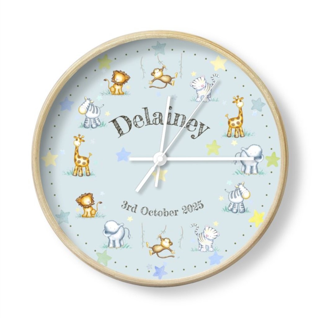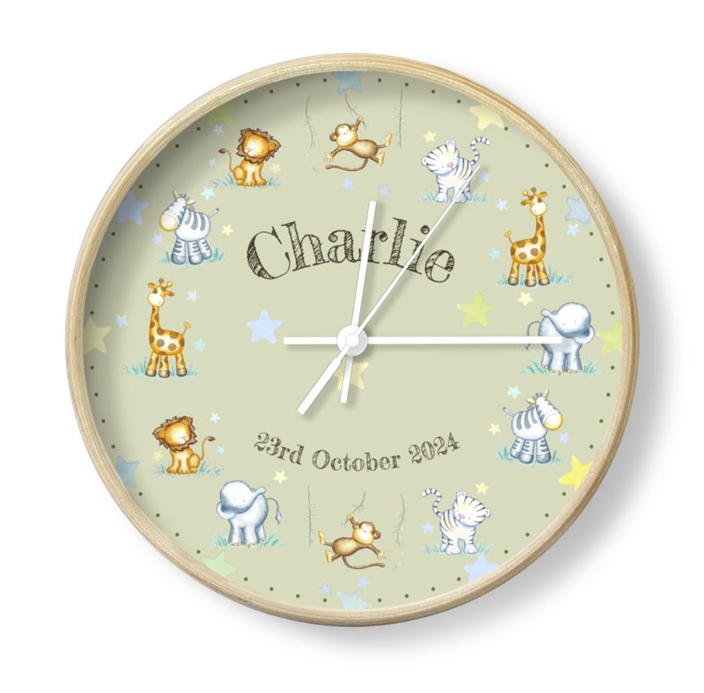 Personalised Jungle Animal Nursery Clock – New Baby Gift