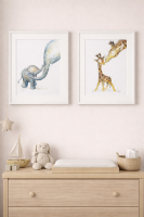 - Original baby giraffe and mummy watercolour painting by Kate Garrett. A gentle wildlife illustration, hand-painted and supplied mounted ready for framing — perfect for a nursery or animal lover’s home.