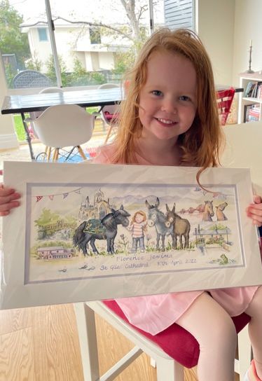 Absolutely. Siblings, much-loved pets, ponies, farm animals or even subtle references to grandparents can be woven gently into the composition. Including personal details makes your artwork a unique baby gift filled with meaning.