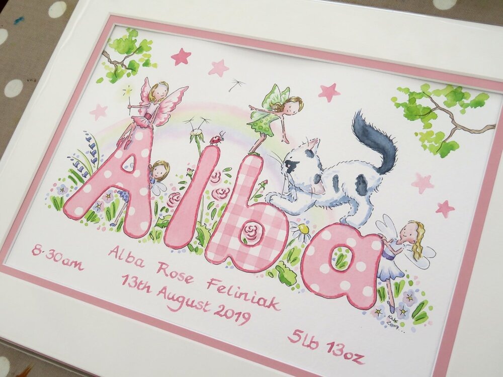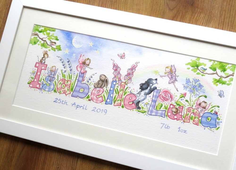 Including family and pets transforms a personalised name painting into a deeply personal keepsake — a luxury baby gift filled with memory and affection.
