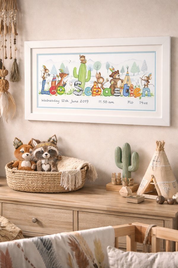 These subtle background touches create nursery wall art that carries real story — ideal for those searching for a truly bespoke baby gift UK families will treasure.